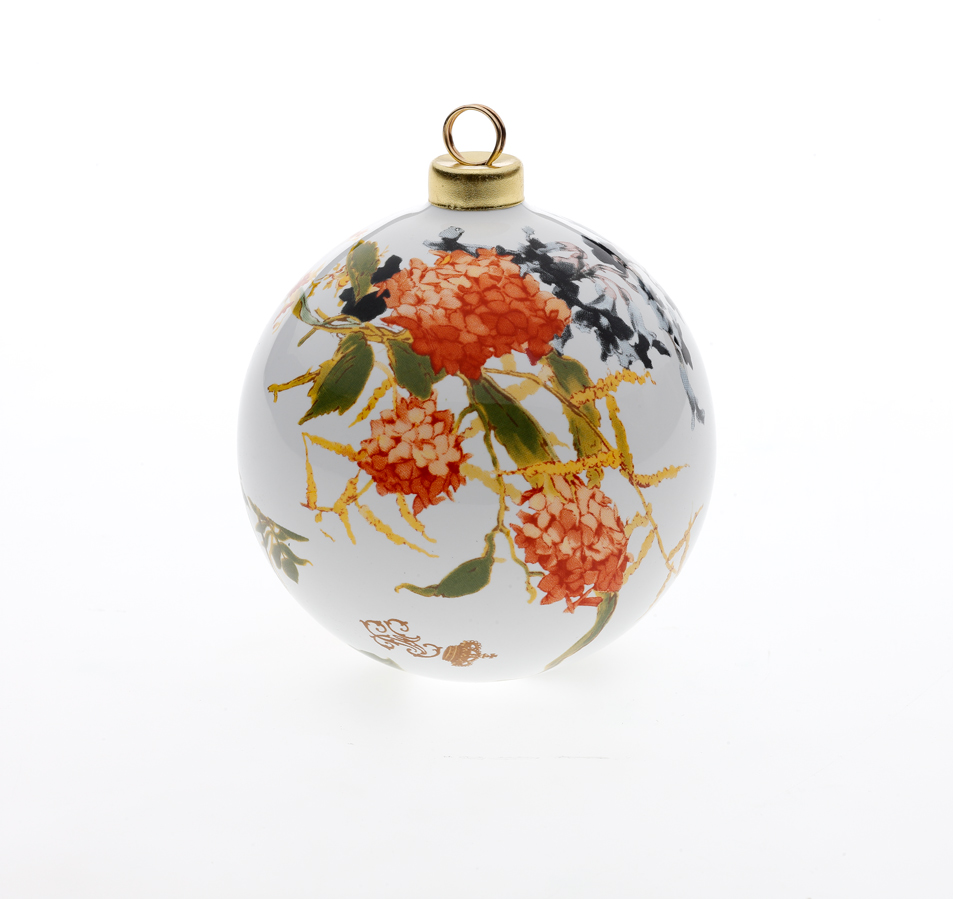Ceramic deco ball inspired in Maria Pia's summer dinner service at Palacio da Pena, Sintra. Available in 8cm, is white glazed with application of a decal reproduction floral dinner set.